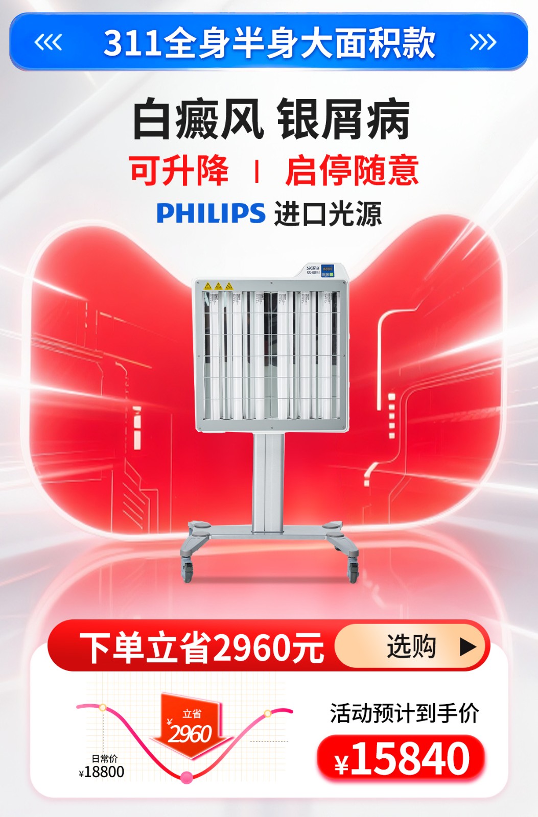 公司主要产品是医疗机构使用的大型专业设备,不断的更新迭代,我们的产品有全身大型光疗仪,日光模拟器,红蓝黄光动力,皮肤检查灯等,满足了医院皮肤科多病种,多层次的光疗需求。基于专业大型设备的产品使用经验,我们也同步研发出适合家用的产品,主要有311nm灯管型、SQLED308光疗仪,308准分子氯化氙紫外线光疗仪适用于白癜风银屑病的居家治疗,现在受到广大客户的欢迎,并且我们也不断更新产品线,把控产品质量,在2025年,我们公司推出的60mw强度SQLED308产品系列,能针对手脚顽固白癜风达到理想复色。