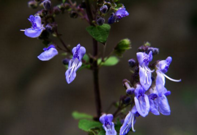 中药冬凌草,别名又叫山香草、破血丹、雪花草、野藿香、六月令、山荏、冰凌草等。为唇形科植物碎米桠的全草。茎基部近圆形,上部方柱形,长30-70cm。下部表面灰棕色或灰褐色,外皮纵向剥落;上部表皮红紫色,有柔撬 ,质硬脆,断面淡黄色。叶对生,叶片皱缩,展平后呈卵形或菱状卵形,长2-6cm,宽1.5-3cm,先端锐尖或渐尖,基部宽楔形,并骤然渐狭下延成假翅,边缘具粗锯齿,齿尖具胼胝体,上面棕绿色,有腺点,下面淡绿色,沿脉有疏柔毛;具叶柄。聚伞状圆锥花序顶生,总梗与小花梗及花序轴密被柔毛;花小;花萼钟形,萼齿5,二唇形,花冠二唇形,雄蕊4。小坚果倒卵状三棱形,淡褐色,无毛。气微香,味苦、甘。