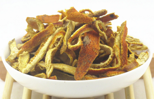 陈皮归肺、脾经,辛散通温,善于理气,能入脾肺,既能行散肺气阻塞,又能疏散中焦的郁气,所以陈皮常用于肺气拥滞、胸膈痞满及脾胃气滞、脘腹胀满等症。
