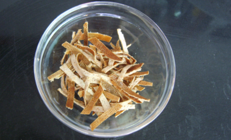 2、微红皮(黄皮)指果皮开始着色,但未完全着色,生理仍未充分成熟时(通常指农历寒露至小雪)采收果实所加工的皮,外表色泽褐黄色至棕黄褐,有无数大而凹入的油室,皱缩较明显。内表雪白、淡黄白至棕红色,海绵浮松状不明显。质较硬,皮微厚,味辛带苦略甜。