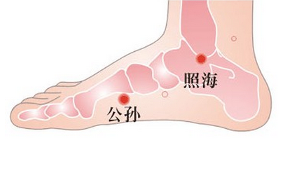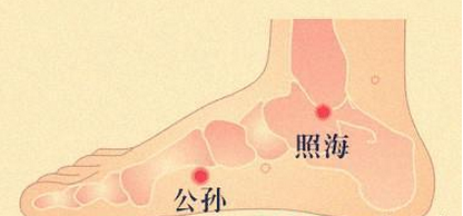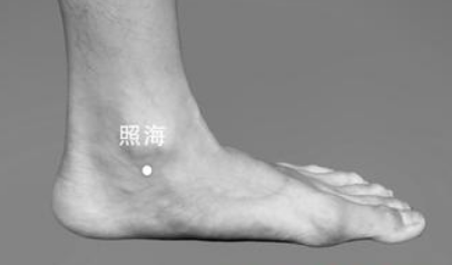 照海穴位于足内侧,内踝尖下方凹陷处。即:在我们脚上内踝骨下方的凹陷处,用手掐按或用皮肤针敲打不要出血。