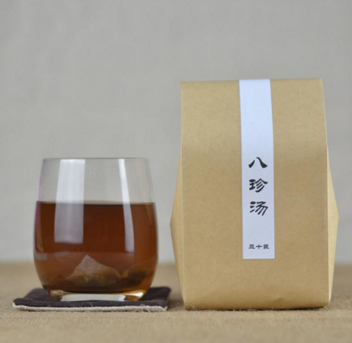 八珍汤,从名字即可看出有8种药材,一般使用当归、川芎、白芍药、熟地黄、人参、白术、茯苓、炙甘草制成,有补气之功效。不过,可以根据个人的体质,达到需求的功效适当的调整药材的种类。