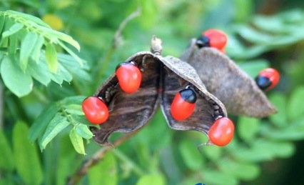 鸡母珠是属于相思豆的一种,却是剧毒。如果你不把它本身的壳子弄破的话,那就不会有毒素。所以,鸡母珠的叶子是可以吃的,还有许多药用价值哦!