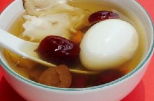 主料:鸡蛋210克辅料:益母草30克延胡索10克枣(干)15克、将元胡、益母草、大枣、鸡蛋,加清水适量,煮至鸡蛋熟后,去壳再煮片刻,去渣取汁。主料:黑米50克糯米100克辅料:枣(干)10克当归6克延胡索3克调料:冰糖15克