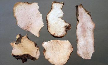 白茯苓的根状茎粗厚,坚硬,为不规则的块状,粗2-3厘米。
