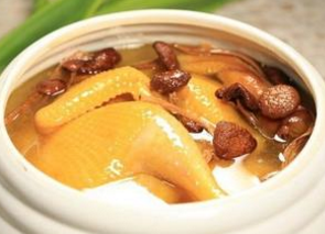 原料:母鸡(柴鸡或绿乌鸡)1只,党参50克,黄芪50克,红枣10克。