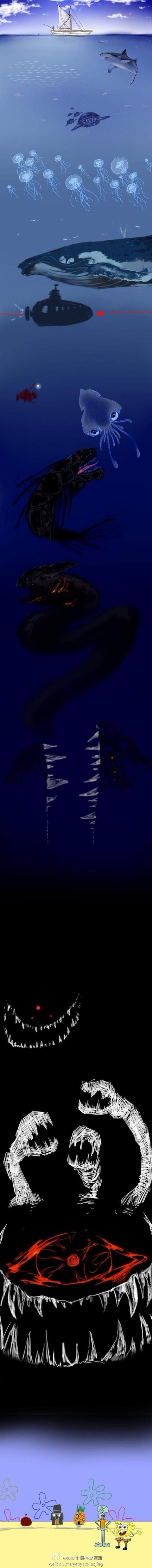 4、这种图,对于喜欢的人还说很享受,喜欢潜泳,也向往深潜。但对于有深海恐怖症的人来说,一点也接受不了。