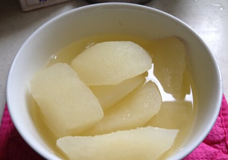 做法:梨1个,蜂蜜50克。先把梨挖去核,将蜂蜜填入,加热蒸熟。每日早晚各吃1个,连吃数日。