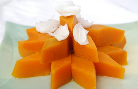 2、据《滇南本草》载:南瓜性温,味甘无毒,入脾、胃二经,能润肺益气,化痰排脓,驱虫解毒,治咳止喘,疗肺痈便秘,并有利尿、美容等作用。