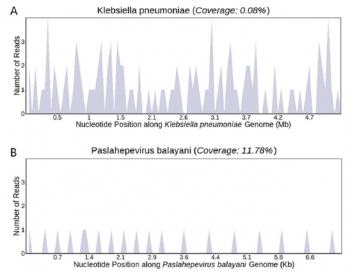 图1 脑脊液样本中肺炎克雷伯菌和HEV的基因组覆盖图