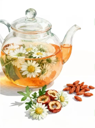 灯盏花:3克;杭白菊:5-8朵(平肝明目,清热解毒);山楂干:3-5片(活血化瘀,消食降脂);枸杞:10粒(滋阴)