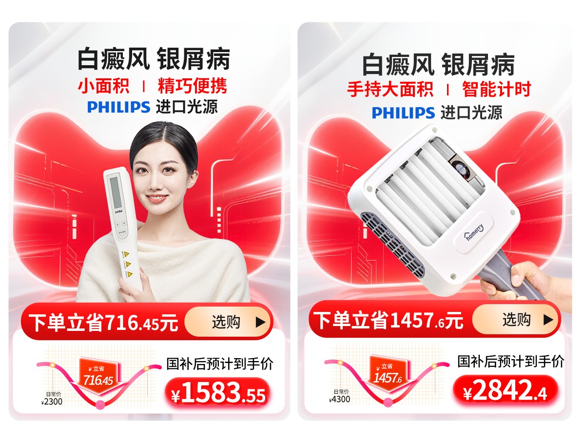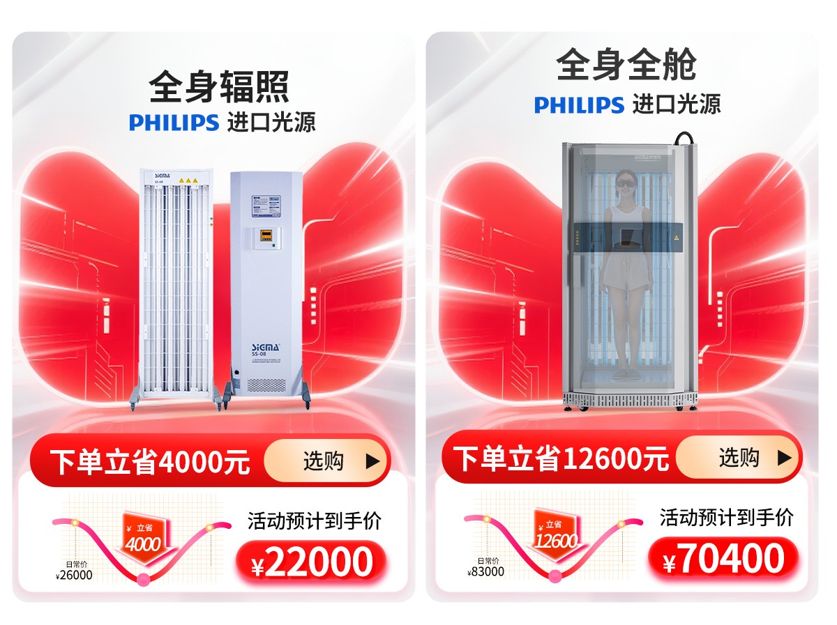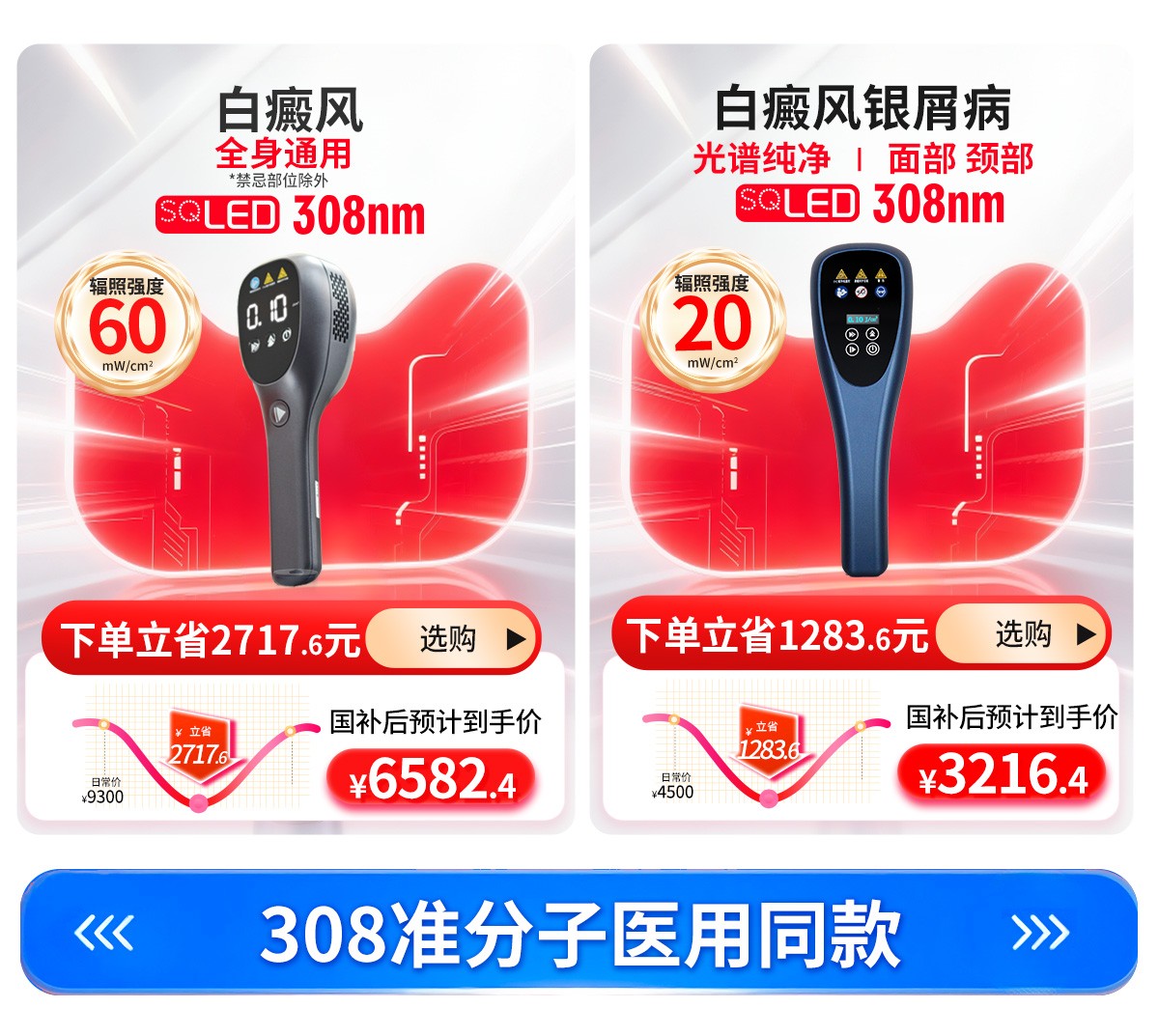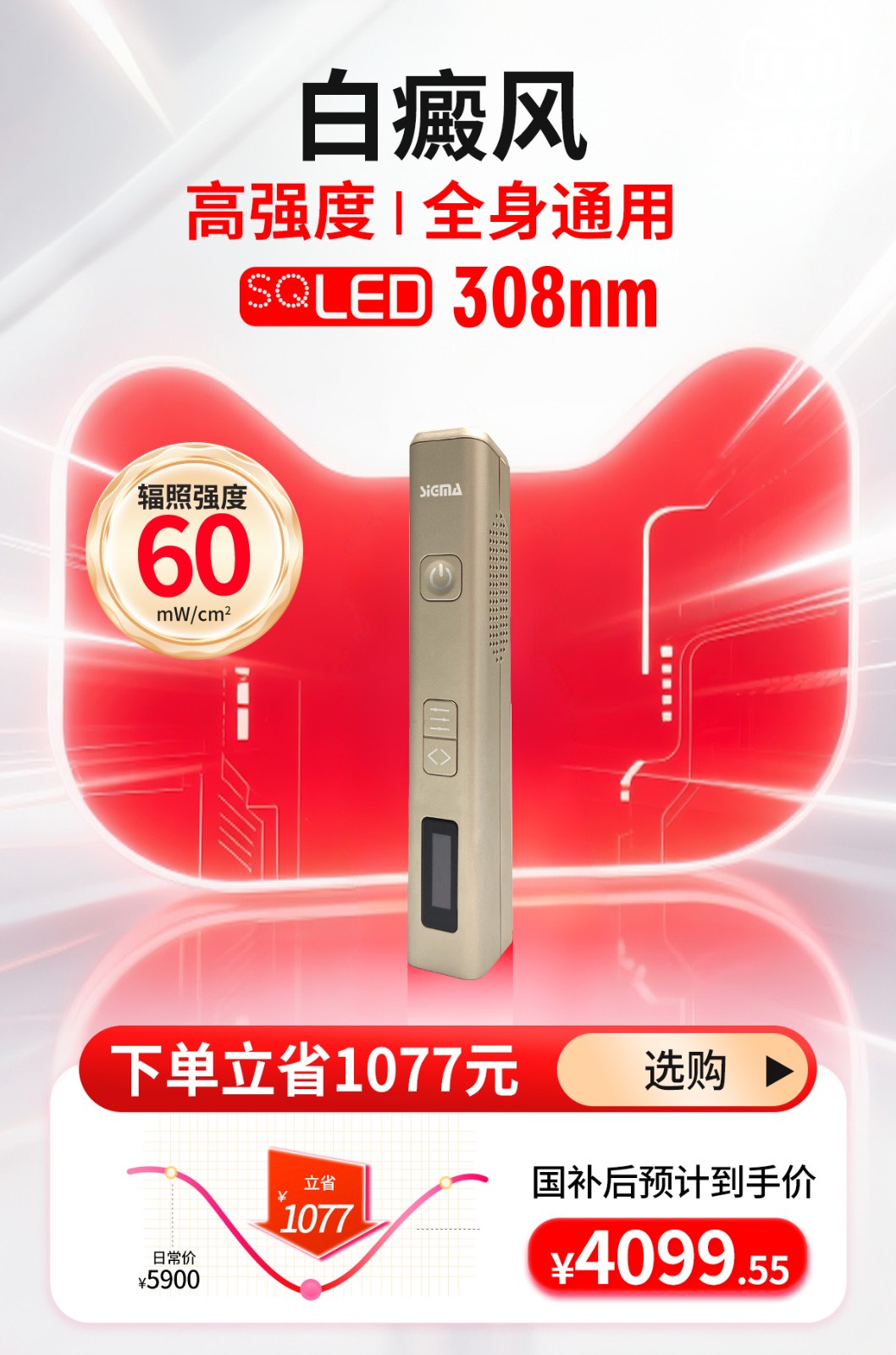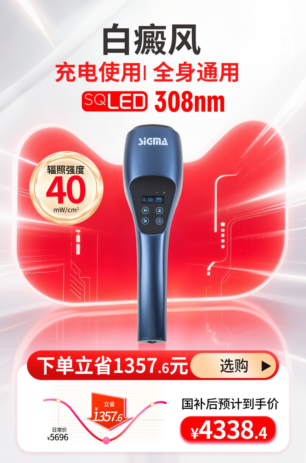 希格玛双12活动大促家用SQLED308准分子白癜风银屑病氯化氙光疗仪热卖中